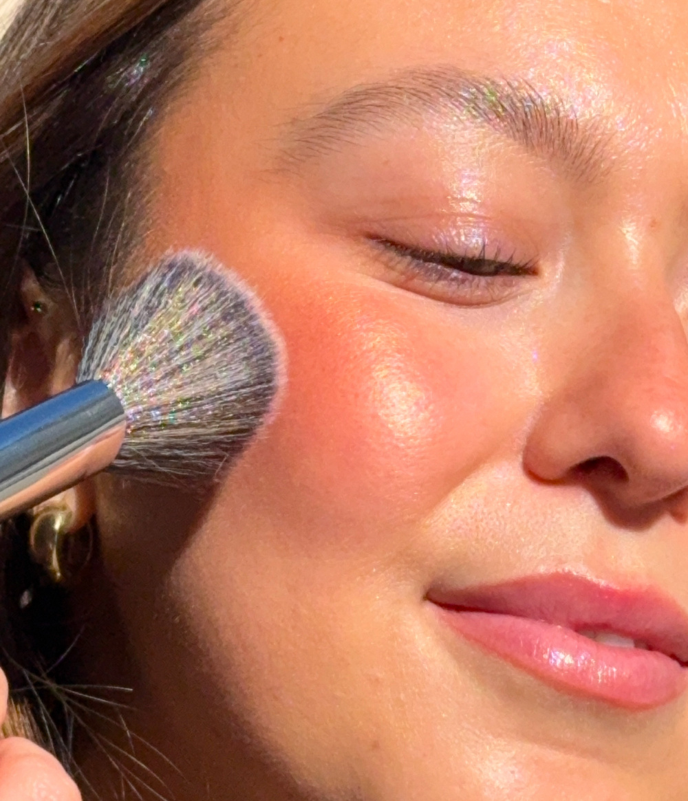 - Powder-to-cream highlighter