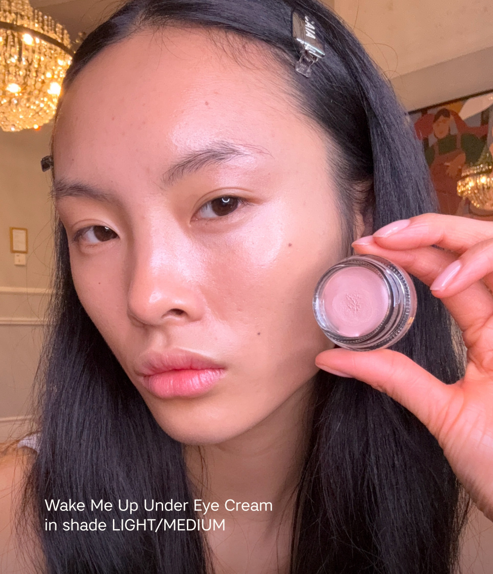 Our bestselling Wake Me Up Cream and the Wake Me Up Complexion Enhancer is the easy way to look instantly refreshed. The Wake Me Up Cream melts seamlessly into the under-eye area to visibly brighten, correct, and neutralize blue tones for a rested look. Paired with the Wake Me Up Complexion Enhancer, a lightweight, multipurpose glow booster that adds hydration and soft light for the whole face, this duo delivers an effortless, radiant finish. Wear them alone or layered under makeup for fresh, luminous skin.